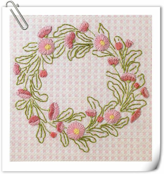 這個美麗的花環(huán),展現(xiàn)了多種刺繡針法。