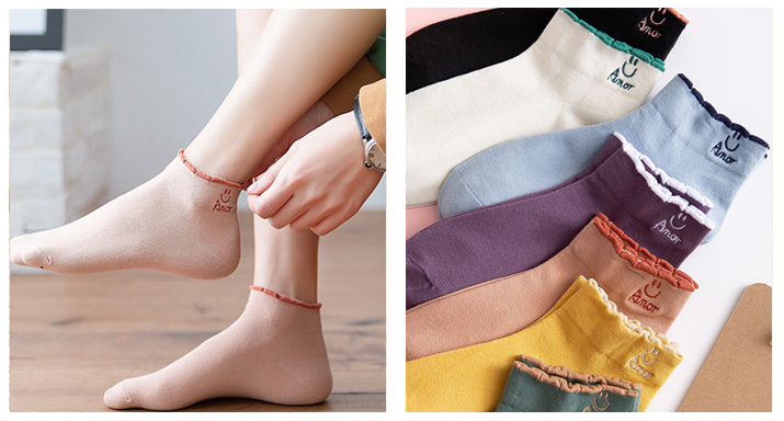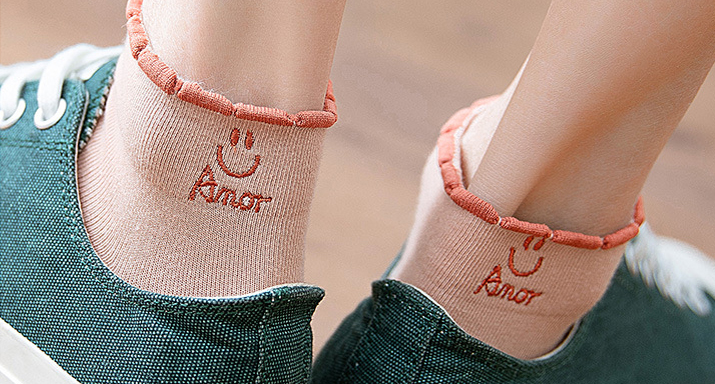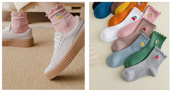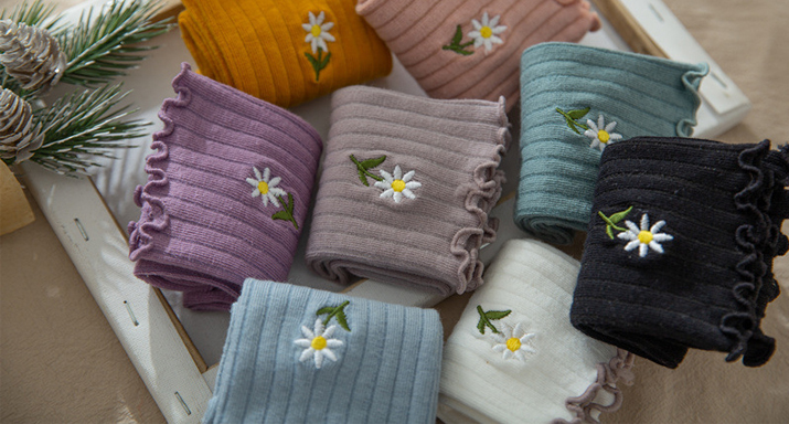 比起純色的襪子,刺繡襪子上的小刺繡圖案瞬間變的有趣,
