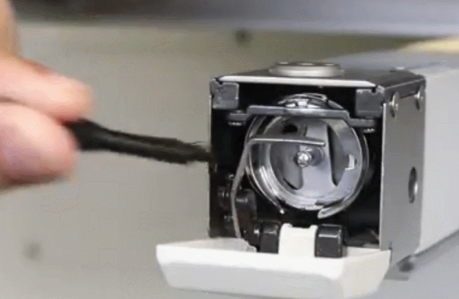 1、旋梭:應每班(8小時)用刷子(或用壓縮氣吹)清除無紡布灰塵及線屑,每兩周應打開針板,進行一次徹底清除,每次清理干凈后順便加一小滴縫紉機油,以不使油污染繡品為度。
