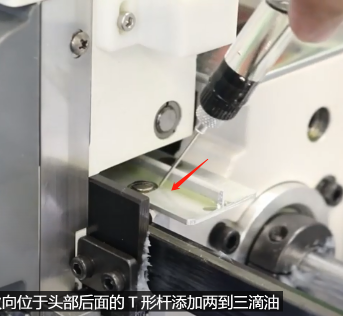 11、針板上有一油孔,在針孔后面,該油孔為旋梭的注油孔,應每8個小時加一小滴縫紉機油。采用高速自動加油旋梭,如能正確加油(加油前首先清除油孔上的無紡布灰塵,否則會因灰塵進入油孔通道內,進入滾動孔內,使旋梭軸磨損加劇,同時堵塞油孔,造成不能自動加油),只要在該油孔注入則會自動進入旋梭內導軌,對旋梭自動潤滑。切記,如果該處失油,首先機構運轉噪聲增大,斷線、跳針等影響正常工作,時間一長,會使旋梭軸和旋梭嚴重磨損而不能使用,直到報廢,嚴重影響生產。
